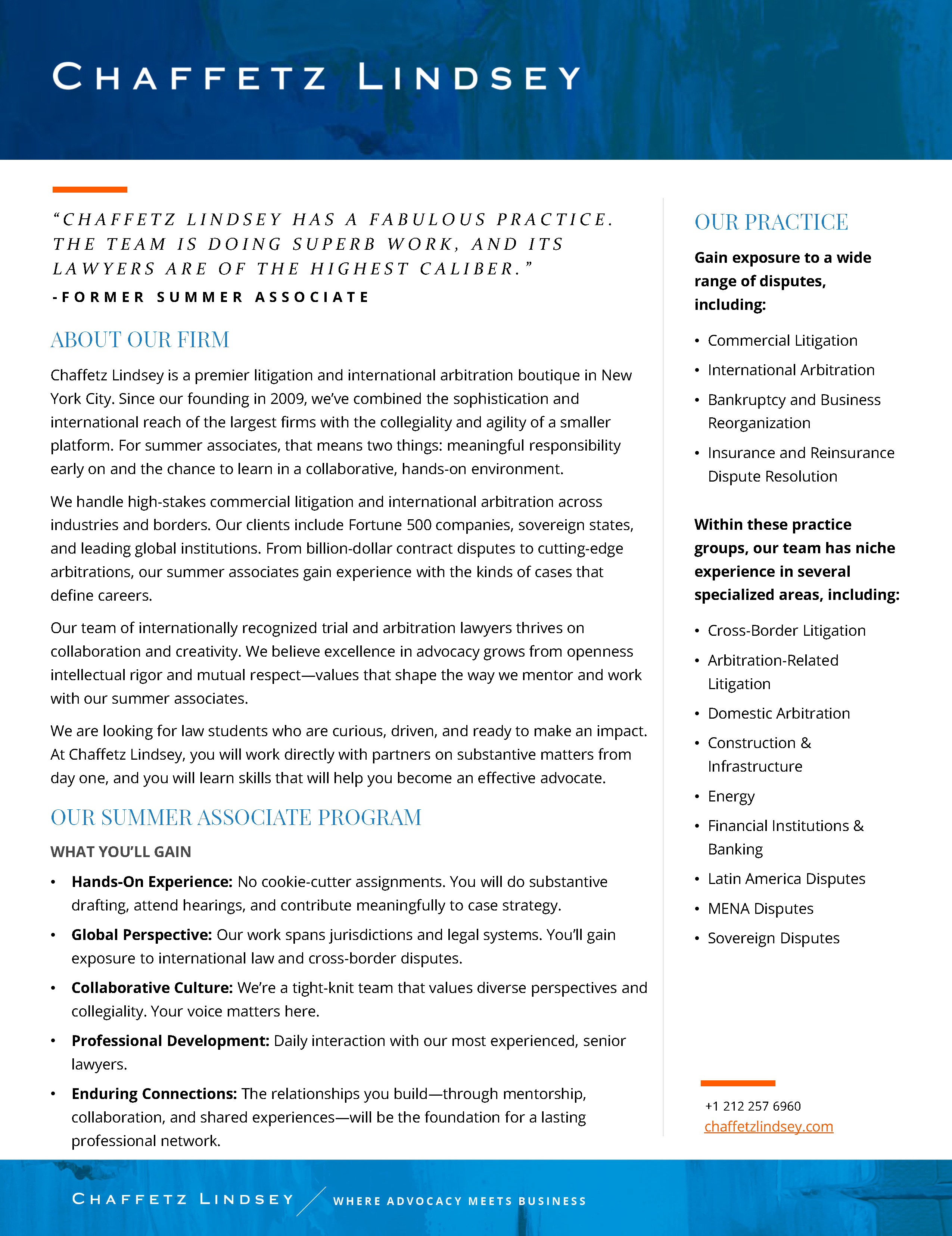 Chaffetz Lindsey Summer Associate Program Brochure_2026_Page_1